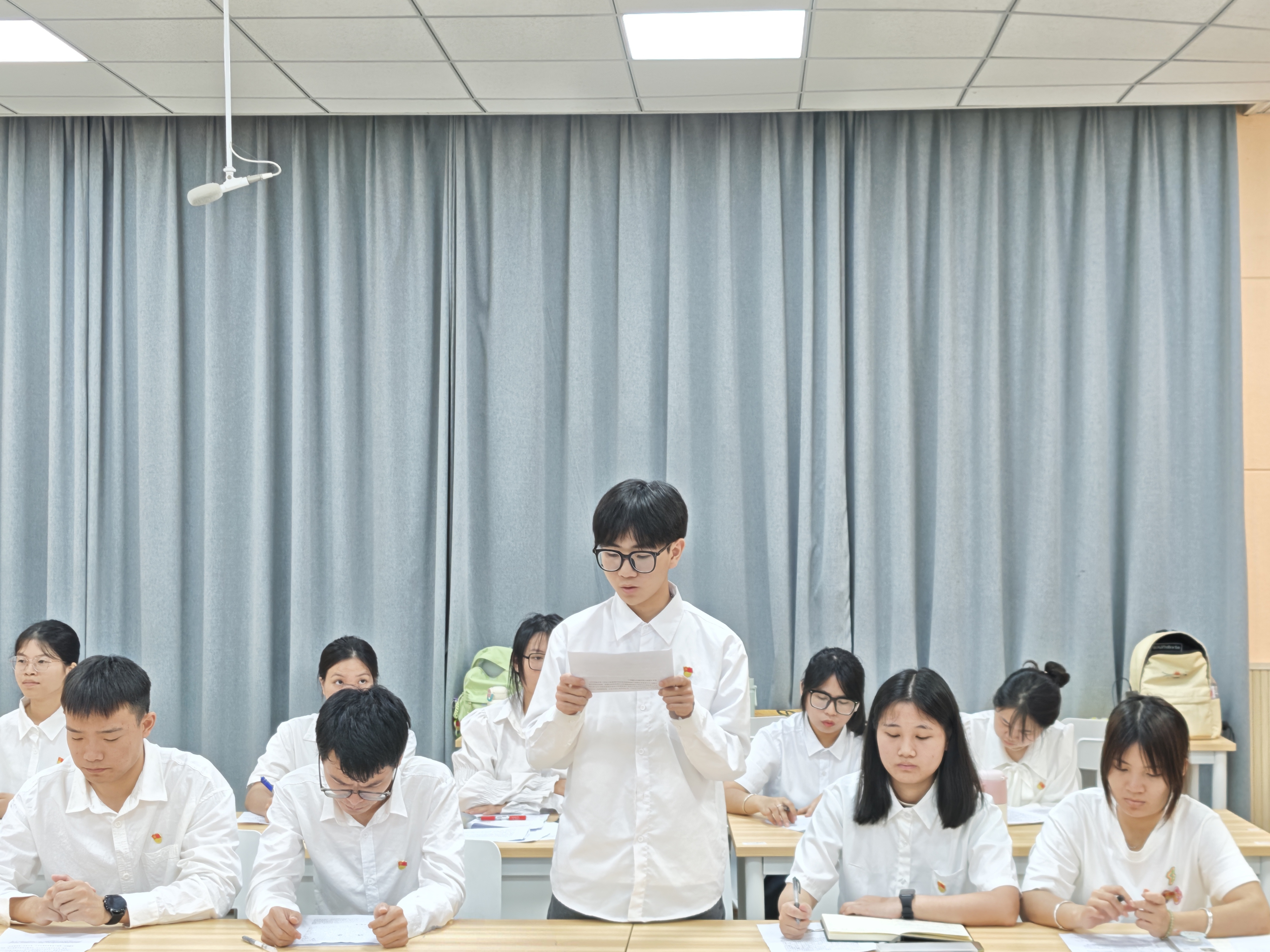 会议伊始,丘夏薇同志向全体党员通报到会情况,宣读大会议程,并强调严格遵循预备党员转正程序开展审议工作。随后,周泳妍等9名预备党员依次宣读转正申请书,系统汇报预备期在思想提升、学业发展、工作实践及日常生活中的表现,深入剖析自身进步与不足。入党介绍人结合预备期间培养考察情况,总结汇报9名预备党员思想、学习及实践的成长与不足。与会党员充分讨论、深入评议,经无记名投票表决,一致同意周泳妍等9名同志按期转为中共正式党员。