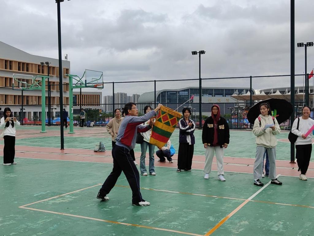 本次比赛由各学院的教职员工积极参与,他们以团队形式展现一场精彩纷呈的体育盛宴。比赛前,各个学院的参赛选手都在有条不紊地进行热身,左右摆动手臂、拉伸等。随着裁判的一声令下,比赛如火如荼的开始。场上,抛球员长臂一挥,绣球在空中划出一条完美的弧线;接球员背篓侧身,紧盯飞来的绣球,灵活地前后左右移动,把绣球稳稳接下。随着运动员们接球、抛球的动作越来越好,观众们为他们的精彩表现欢呼喝彩声也越来越响亮。