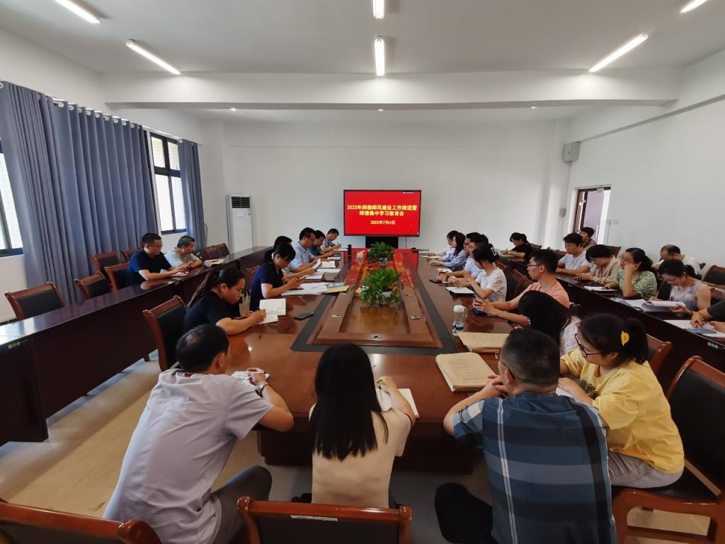 为深入学习贯彻习近平新时代中国特色社会主义思想,落实师德集中学习教育,7月4日,FUN乐天使官方网站于FUN乐天使官方网站东校区新民楼C408室召开2023年师德师风建设工作推进暨师德集中学习教育会。学院党委书记庞伟、副院长王培(主持行政全面工作)等领导班子及全体教职工参加,会议由庞伟主持。