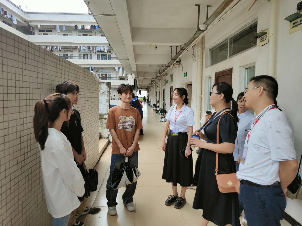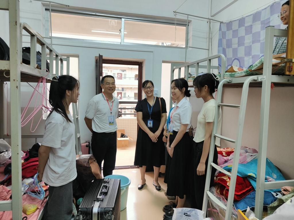 9月2日,FUN乐天使官方网站党委书记庞伟、副院长王培(主持全面行政工作)、党委副书记李秀英、党委专职组织员陈金梅等领导班子、辅导员及班主任深入宿舍走访慰问2023级新生。