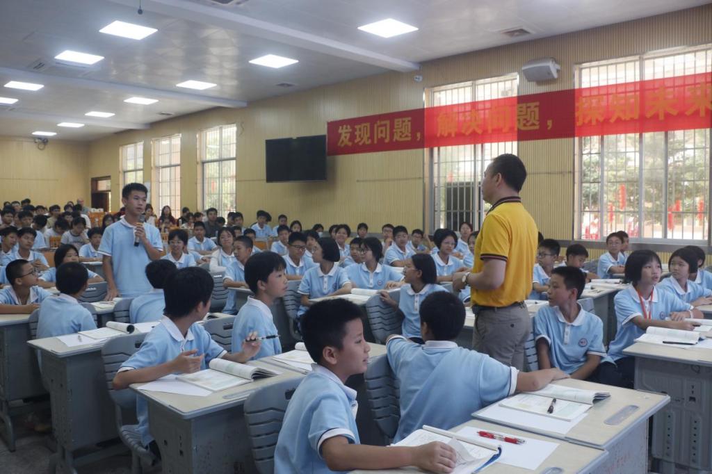 玉林市玉州区第八初级中学校长梁波天、副校长苏秀旺热情地接待我院教师和学子,随后,他们带领庞伟等人对第八初级中学的校园建筑建设与校园文化建设进行参观、交流,并观摩第八中学的特色课间。