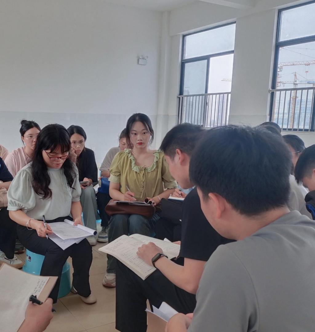 到达目的地后,我院带队老师与玉东新区第二初级中学老师融洽交接,随后进行集体合影留念。合照结束,各老师商讨接下来的教学安排,并最终决定分小组进行。