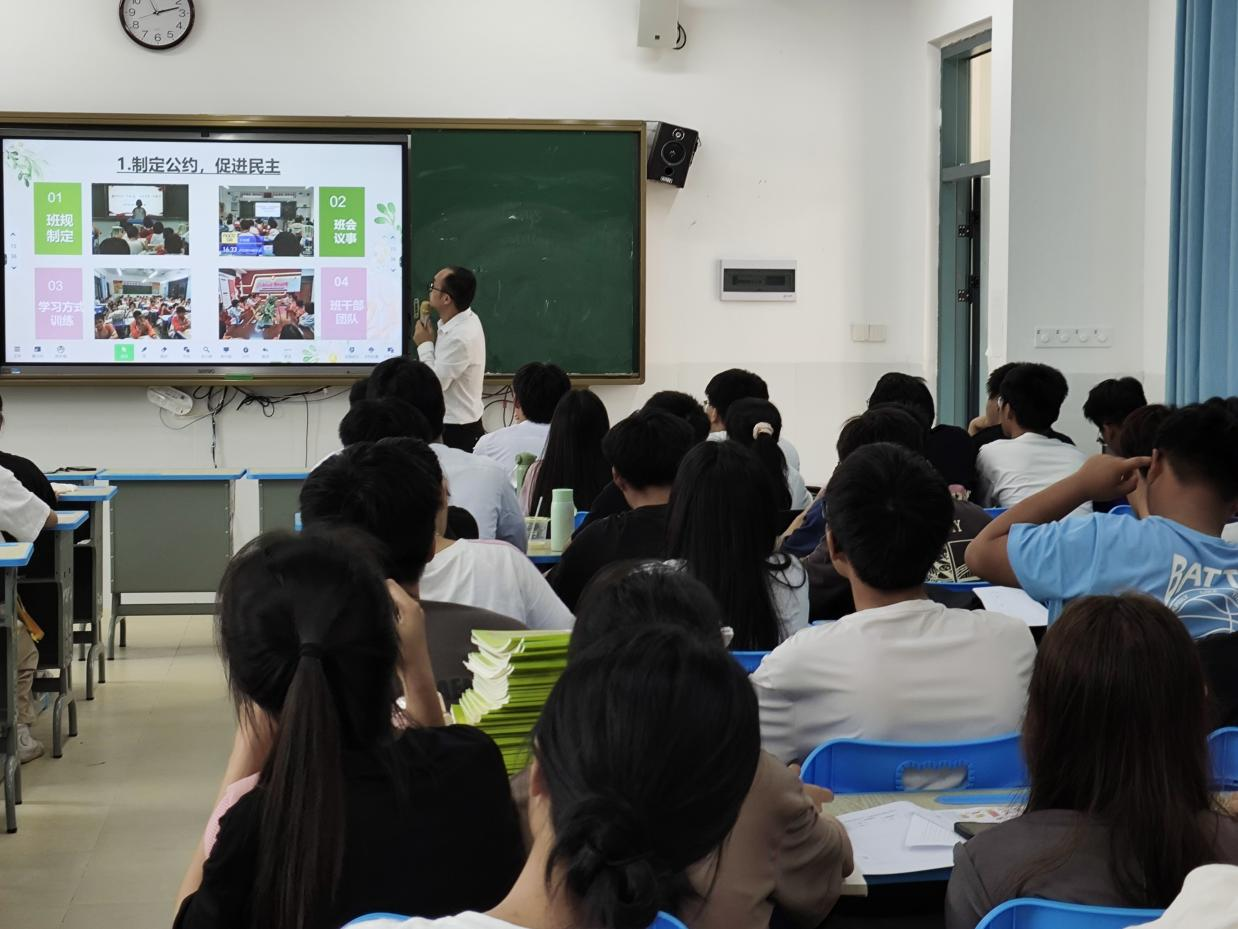 最后,由玉东二中的陈永福老师在会议室统一展开见习活动总结会议。陈永福老师对此次的见习活动进行点评,并为参与见习活动的师范生讲授教学技巧和教学心得,教导见习生们因材施教,用耐心与爱心去对待学生。