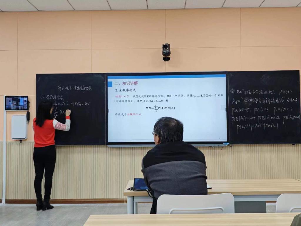 活动上,我院陈泊伶老师以“全概率公式”为题进行模拟试讲。通过“抽到不合格奶粉的概率”例子引出课题,深入浅出地讲解“划分”和“全概率事件”的概念,并采用生动有趣的例子来帮助学生理解和应用。她以清晰、流畅的语言解释全概率公式的原理和计算方法,并通过逐步的引导和示范,帮助学生掌握解题技巧。教学过程中采用信息化技术手段,并将思政元素与教学内容自然融合。