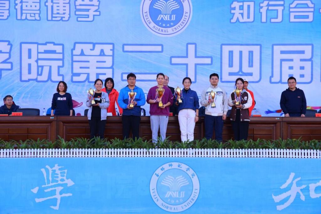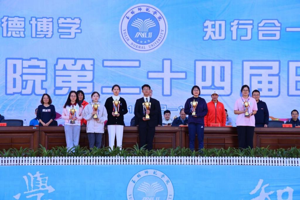 经过两天的奋勇拼搏,最终我院在教工组团体中,以总积分26分的成绩荣获第二名;在学生甲组团体中,以总积分241分荣获学生甲组第一名。本次运动会我院共在11个项目中摘夺桂冠,在20项目中取得前三名的好成绩,并获得优秀组织奖。
