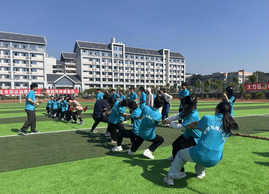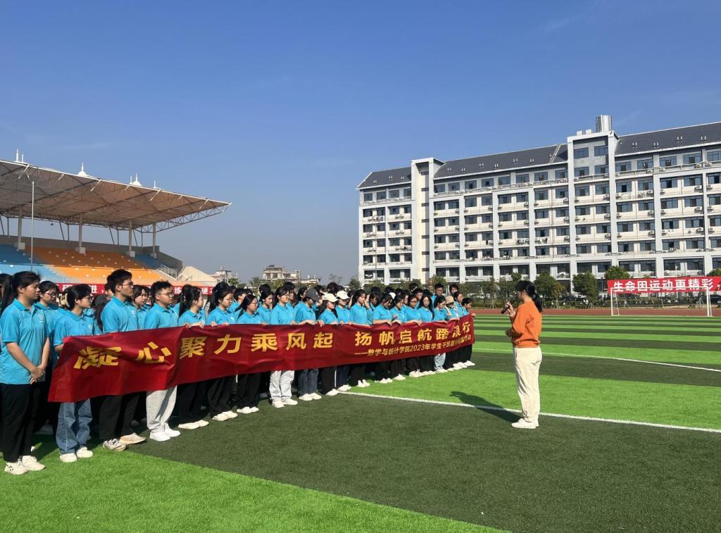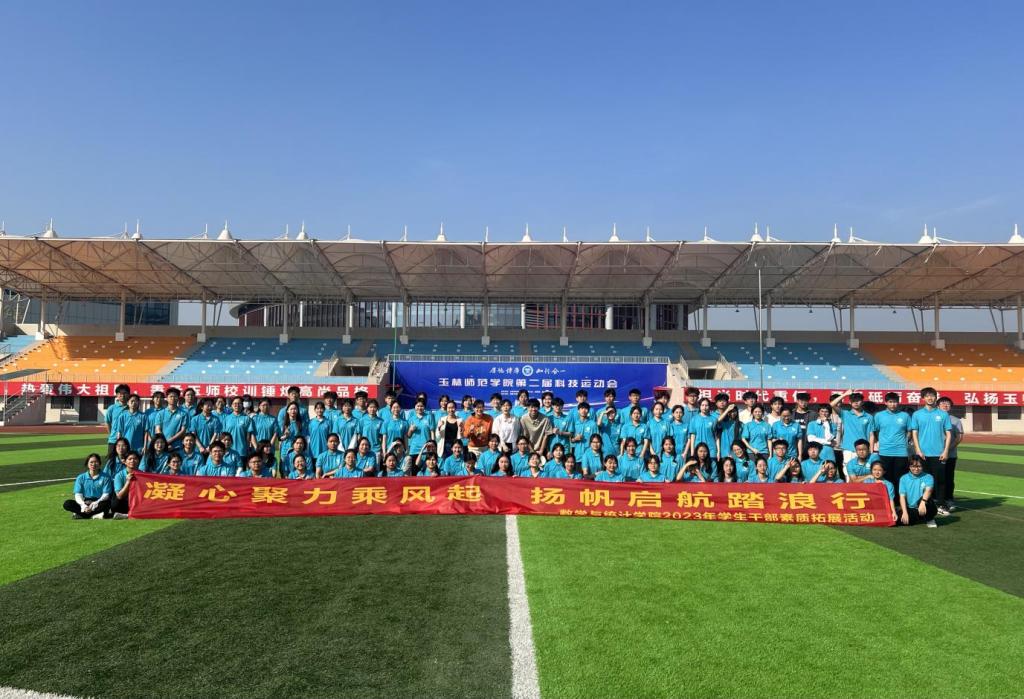 11月25日上午,我院于东校区新田径场开展2023年学生干部素质拓展交流活动。此次活动由我院团委学生会主席段美梅、宋文旭、周文轩主持,学院党委副书记李秀英、团委书记周美艳、辅导员丘夏薇、邓力搏出席,我院全体学生干部、21、22、23级各班班长、团支书共同参与。