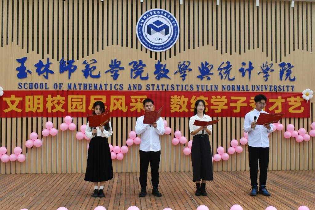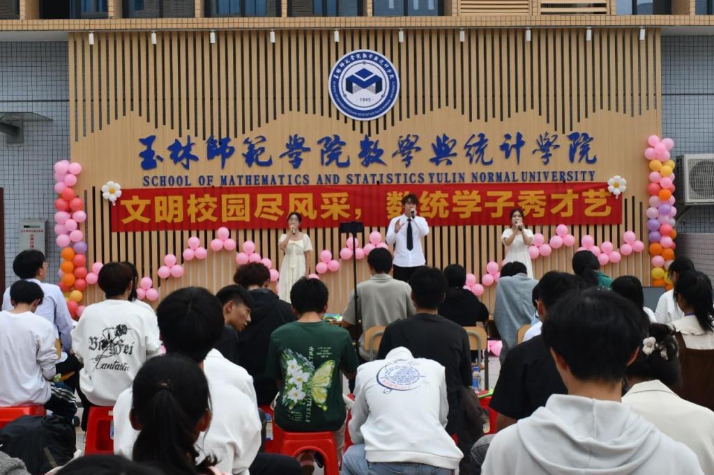 台下观众反响热烈,与表演者们积极互动。现场气氛欢乐轻松,文明与艺术交融,展现出数统学子的青春活力和对大学生活的美好向往。最后,由李秀英、周美艳、邓力搏为获奖队伍颁奖。