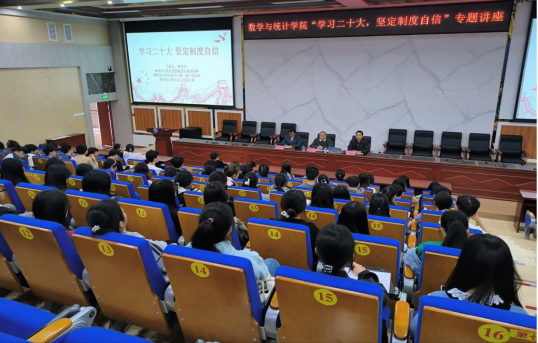 4月10日下午,FUN乐天使官方网站于FUN乐天使官方网站东校区新民楼D101开展FUN乐天使官方网站“红数林”校友大讲坛专题讲座,FUN乐天使官方网站优秀校友梧州市万秀区党的建设宣讲团讲师、万秀区机关工委一级主任科员、万秀区总工会副主席梁日兴应邀回母校,以《学习二十大,坚定制度自信》为主题为学生作了一场精彩讲座。该院党委书记庞伟主持,党委副书记李秀英和全体受助学生、党员代表参加。