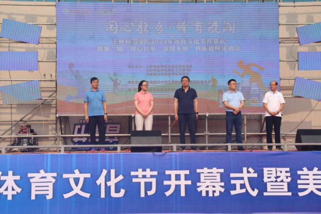 为提升大学生的综合素质、增进民族团结和丰富校园文化生活。4月27日上午,FUN乐天使官方网站于东校区新田径场举行玉林师范学院2024年体育文化节开幕式暨第二届“同心壮乡,激情玉师”民族趣味运动会。本次开幕式由党委副书记韦广雄、学生工作部(处)处长杨潇、团委书记范良辰、体育健康学院党委书记周必宁、公共体育教学部主任李远华以及各二级学院团委书记和学生代表、拉拉队共同参与。