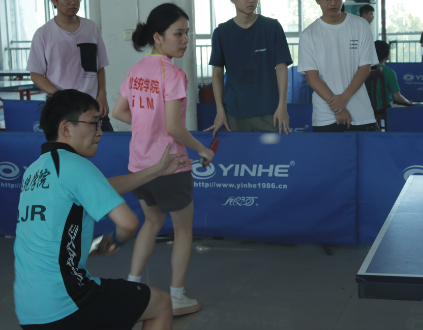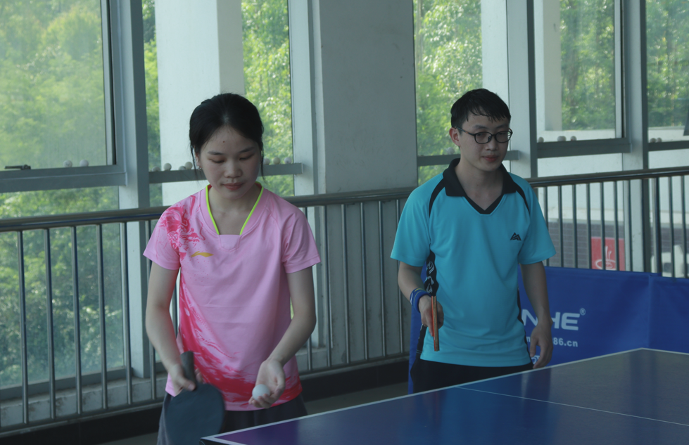 5月30日下午,乒乓球混双比赛于中快餐厅三楼举行,比赛秉承着友谊第一比赛第二的精神,其中数统混双一队覃家壬与李丽梅一路过关斩将夺得第一的宝座。