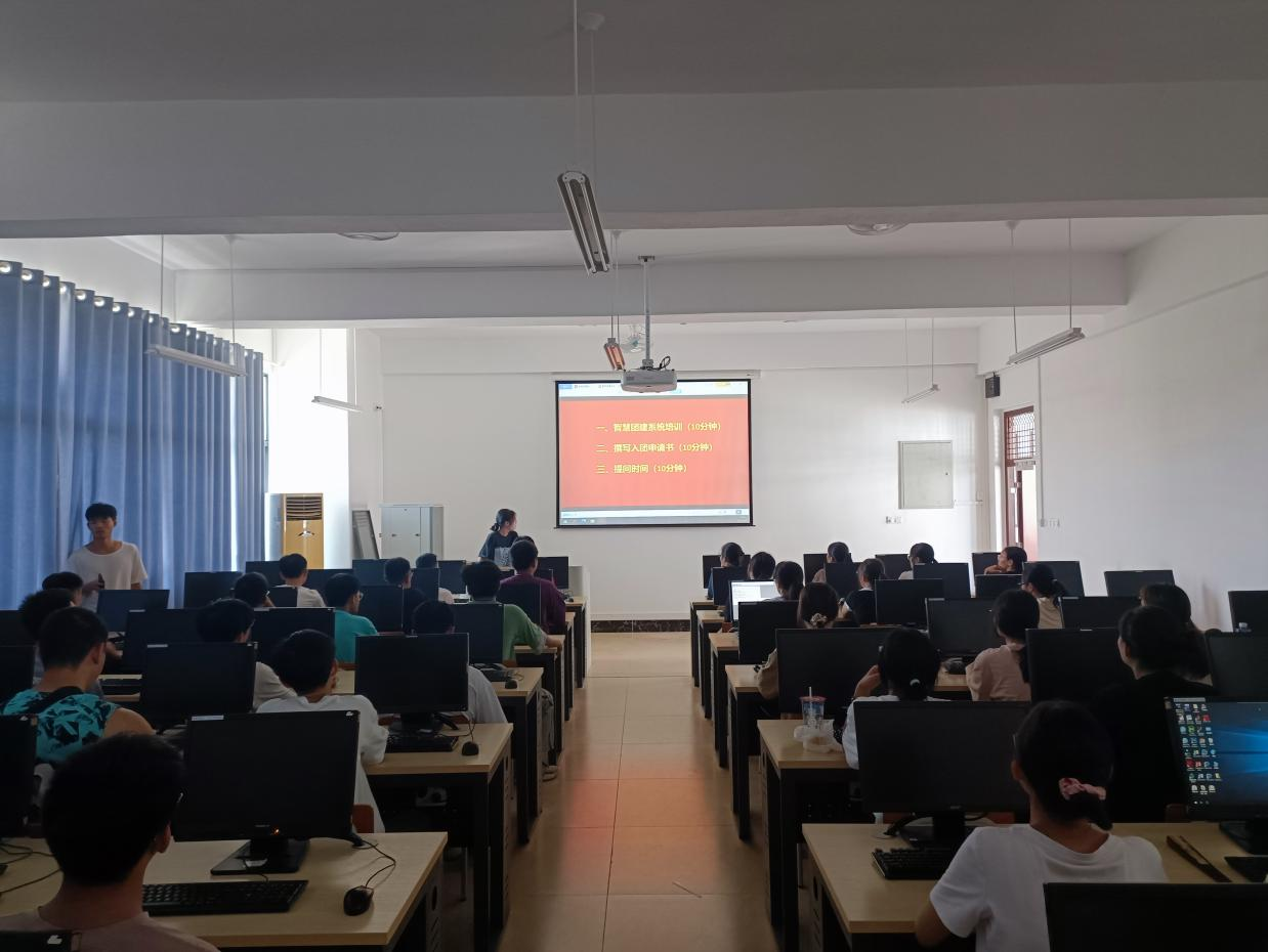 9月6日,FUN乐天使官方网站在新民楼C203、C204机房召开入团申请书撰写暨智慧团建系统培训会,2023级全体新生及助班参加,会议由团委组织部负责人韦丹丹主持。