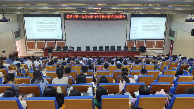 讲座上,李丽洁介绍信息技术与中学教学深度融合,结合信息技术的相关文件,从当下教育数字化出发,并向同学们介绍常用的信息化教学工具与资源,例如希沃白板、洋葱学园和空中课堂等教学工具。她强调,我们作为新时代的数学教师要将信息技术与中学数学教学融合,为使教学更加生动、高效,指出要实操课件制作与微课制作,推进信息技术与中学教学深度融合。