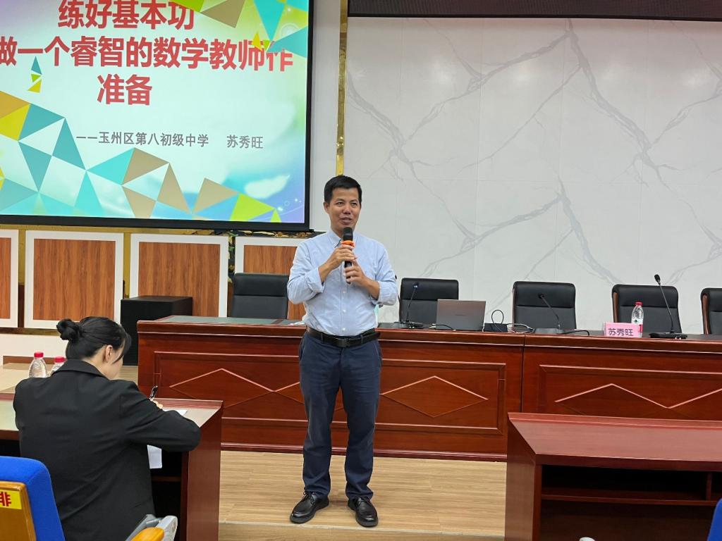 为了提高数学专业学生的职业素质和个人能力,10月30日,我院于新民楼D101开展练好基本功——“为做一个睿智的教师做准备”专题讲座,讲座由玉林市玉州区第八初级中学副校长苏秀旺主讲,我院辅导员丘夏薇主持,全体师范生参加。