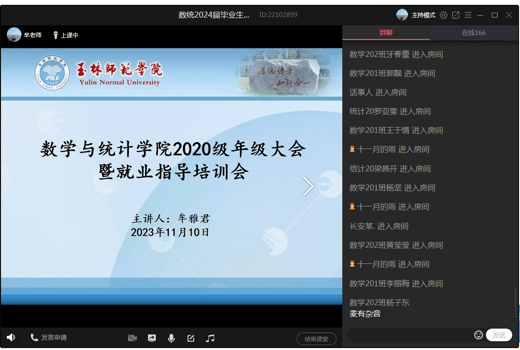 为毕业生提供更好的就业指导服务,切实落实推进就业相关工作。11月10日,我院通过线上会议开展"就业指导培训",本次会议由牟雅君主持,2020级学生参加。