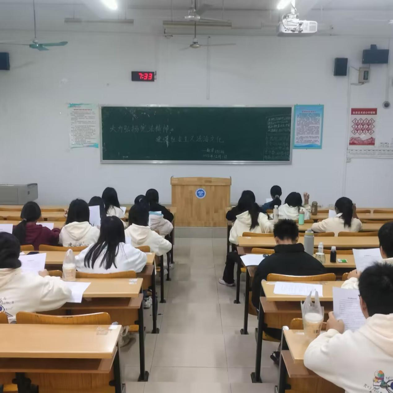 11月28日至12月7日,数学与统计学院于东校区新民楼教室开展“大力弘扬宪法精神,建设社会主义法治文化”宪法晨读活动,我院2023级全体学生参与。